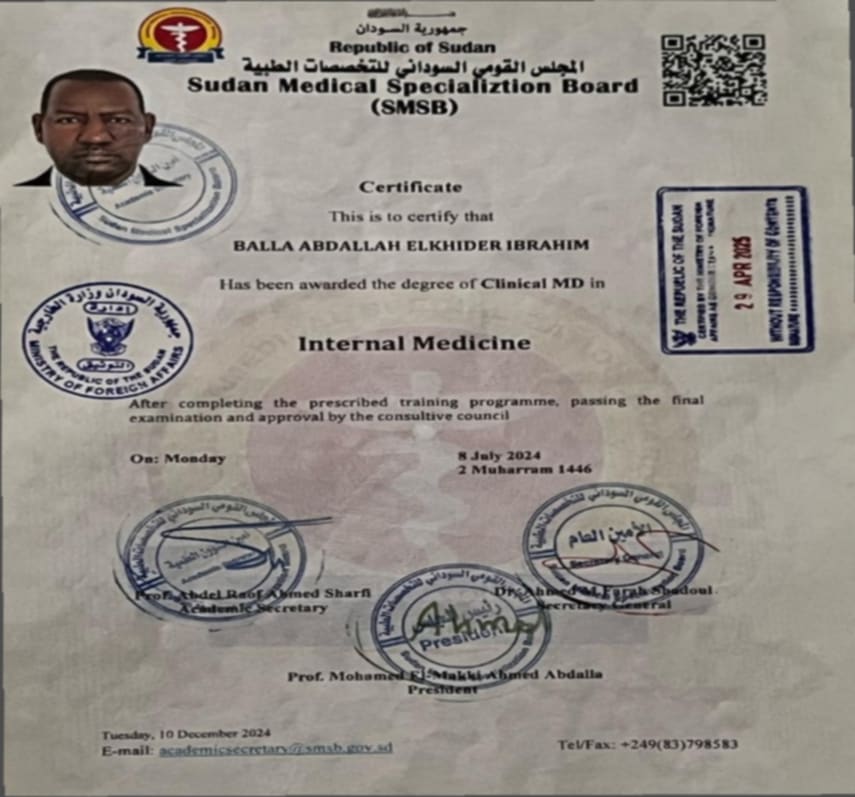 WORKED AS MEDICAL OFFICER IN KOSTI TEACHING HOSPITAL SUDAN